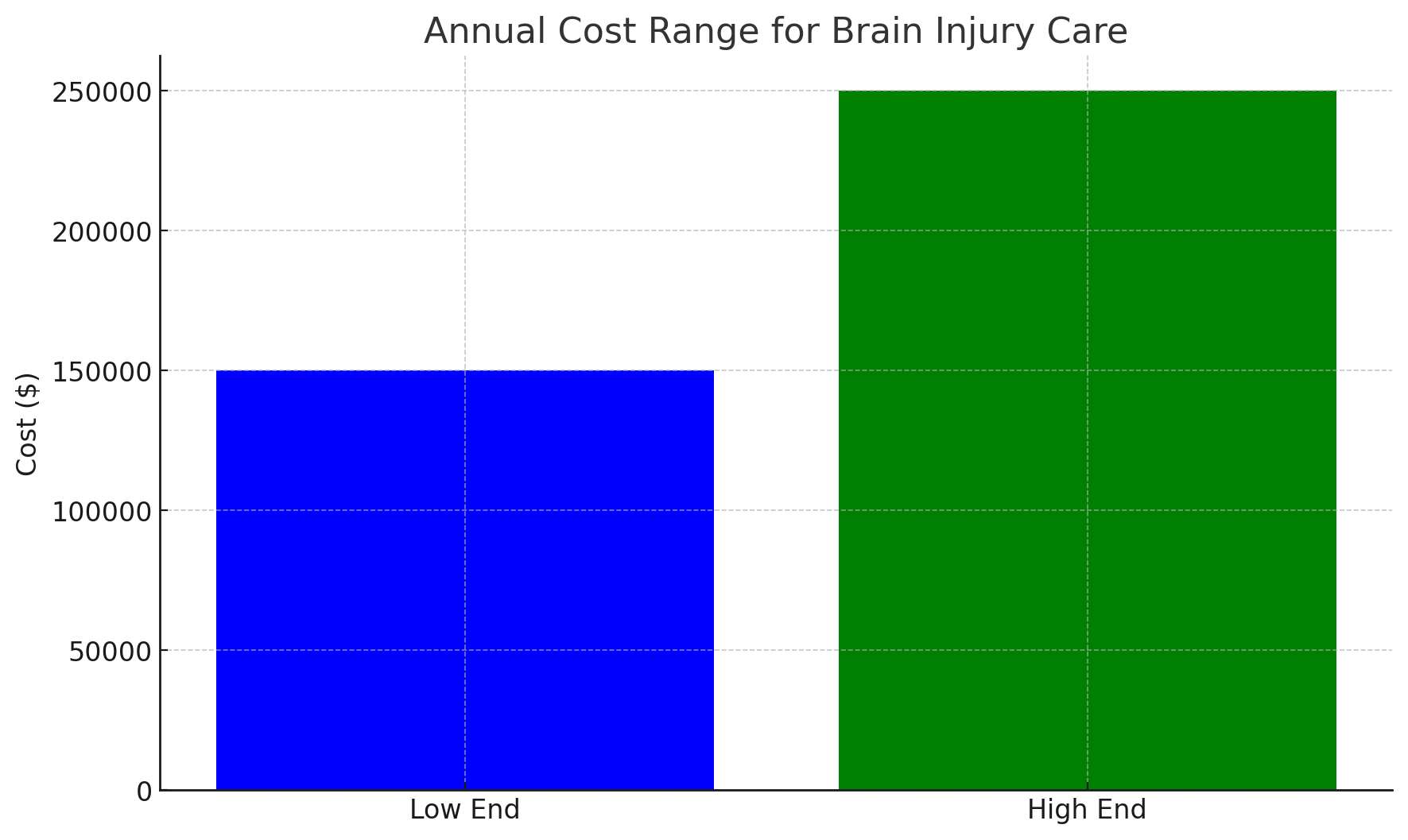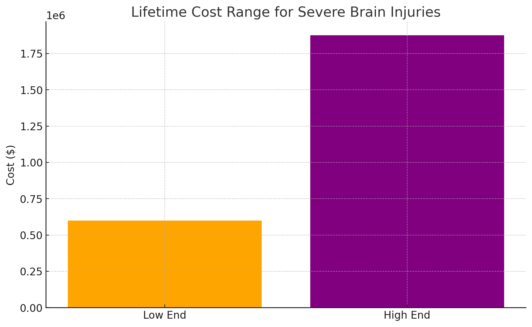 For severe traumatic brain injuries, expenses can range from $600,000 to $1.875 million over a lifetime, averaging approximately $150,000 to $250,000 per year.